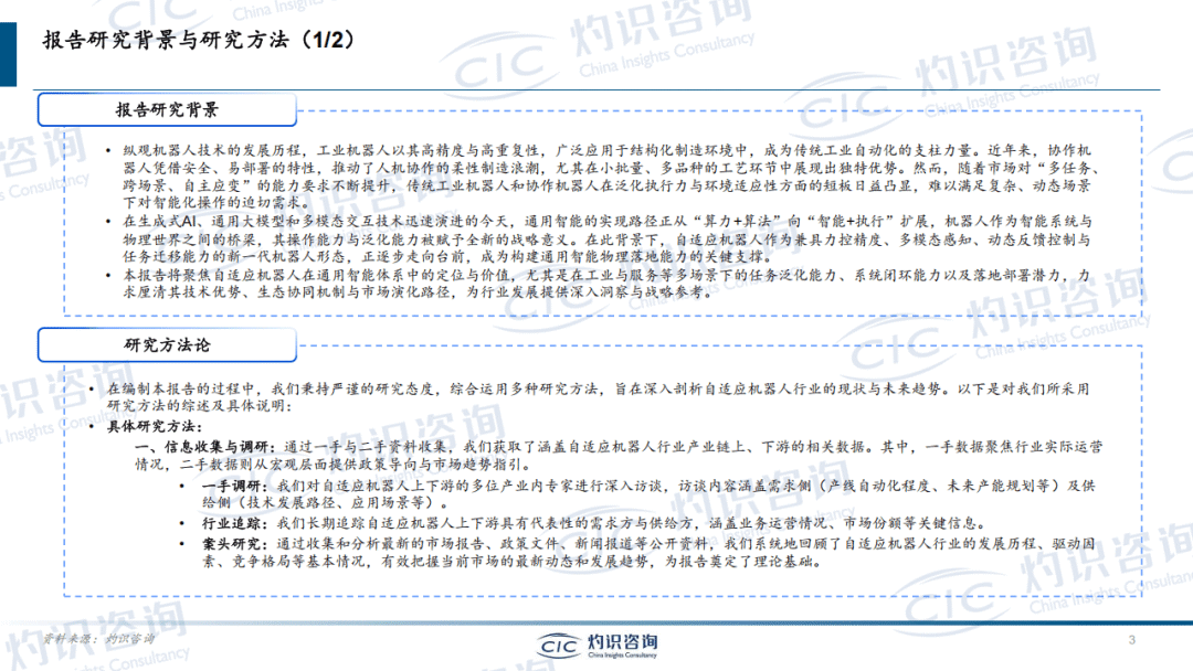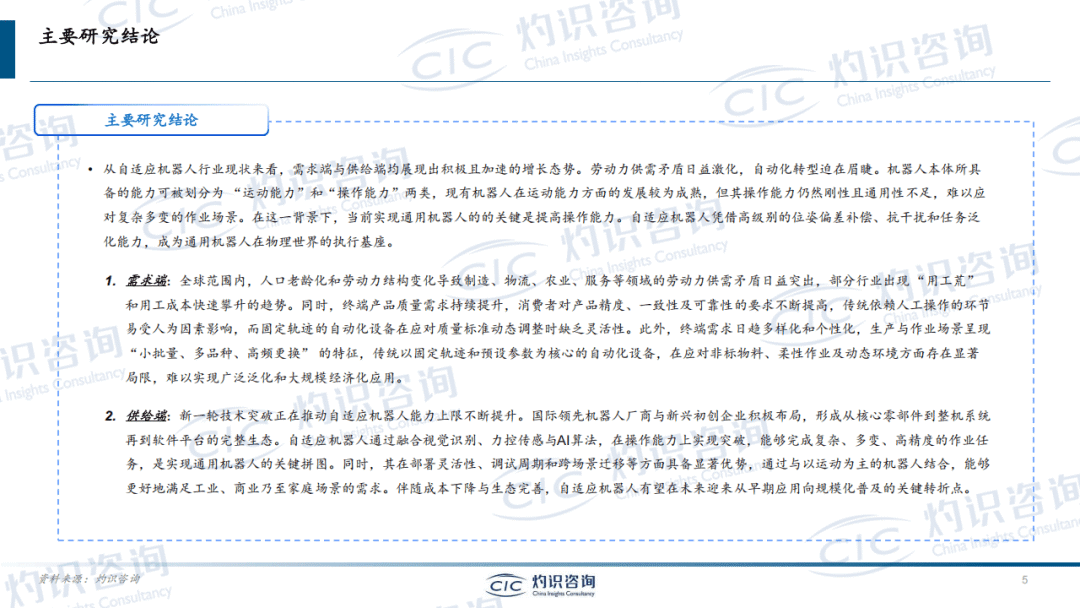 CIC灼识咨询《2025年自适应机器人行业白皮书》系统分析了自适应机器人行业的发展背景、技术特点、市场潜力及竞争格局,核心内容如下: