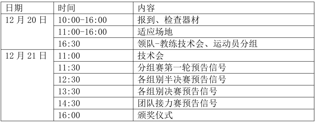 (二)冲滩赛,采用预决赛赛制,预赛随机进行编排分组,不足20人项目采用一次性决赛;混合(男女)接力赛采用集体出发,一次性决赛。最终根据报名情况制定出发方案。