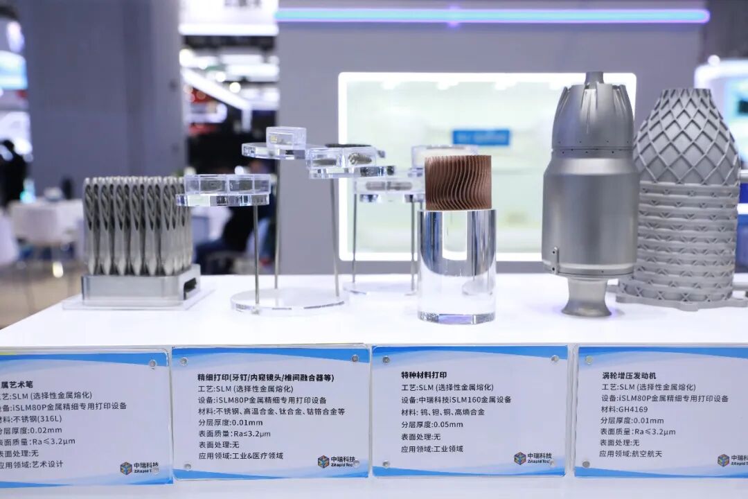 本次展会,中瑞科技集中展示SLM金属与SLA光固化两大技术路线的明星产品,精准覆盖航空航天、具身智能机器人、汽车制造、工业模具、电子电器、医疗齿科、手板模型、艺术创意、教育科研等高端应用场景,为客户提供从微尺寸精细到大尺寸量产的一站式增材解决方案。