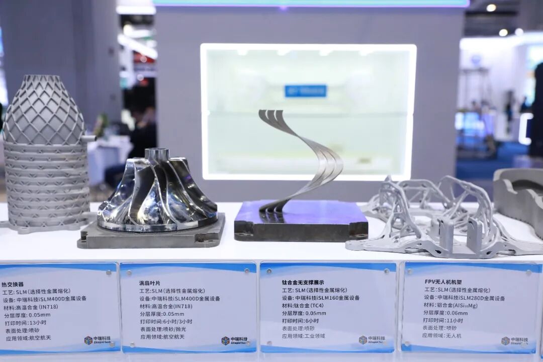 展会现场,中瑞科技展示了航空航天结构件、汽车轻量化部件、具身机器人零件、医疗植入体、高效热交换器、复杂模具镶件等一系列高性能打印样件,凭借极致精度、优异力学性能与创新结构设计,成为现场吸睛亮点。众多行业客户与合作伙伴在样件前驻足探讨,对中瑞科技的工艺成熟度、材料适配能力与工程化落地能力给予高度认可。