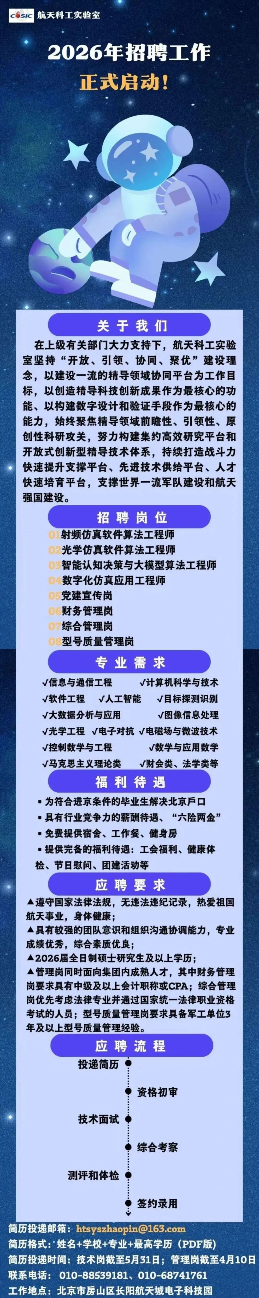 国防招聘丨航天科工实验室2026年春季招聘全面启动