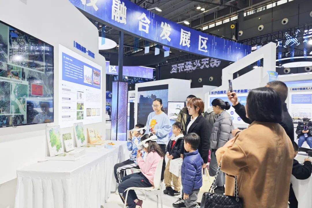 在文化科技融合发展区,我院不仅展示了《南岳七十二峰三维图卷》《湖南测绘五十年》《寸土寸心》等文化书籍产品,还展示了实景三维赋能低空智联、服务旅发大会以及与自然资源业务关联融合应用等成果。同时,通过“张家界缤纷热气球”“张家界翼装飞行穿越天门洞”“丈量地球之巅”珠峰数字孪生等VR体验产品以及实景三维立体拼图地图等文创成果,使观展者通过听觉、触觉、视觉全方位深度融入实景三维场景,领略实景三维技术对经济社会发展的应用价值。