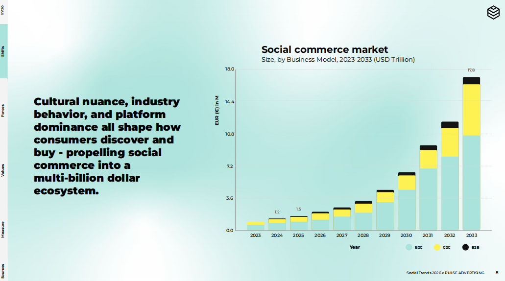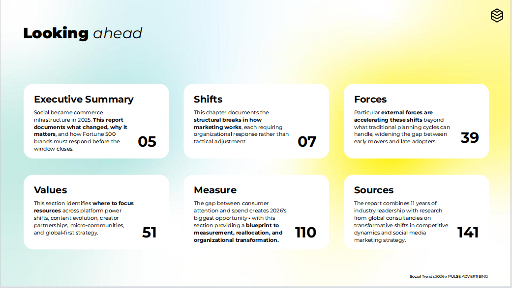 《2026 年社媒营销趋势报告》指出,全球社媒营销已发生结构性变革,社交平台与商业深度融合,传统营销模式失效,品牌需通过战略调整把握 12-18 个月的先发优势窗口。
