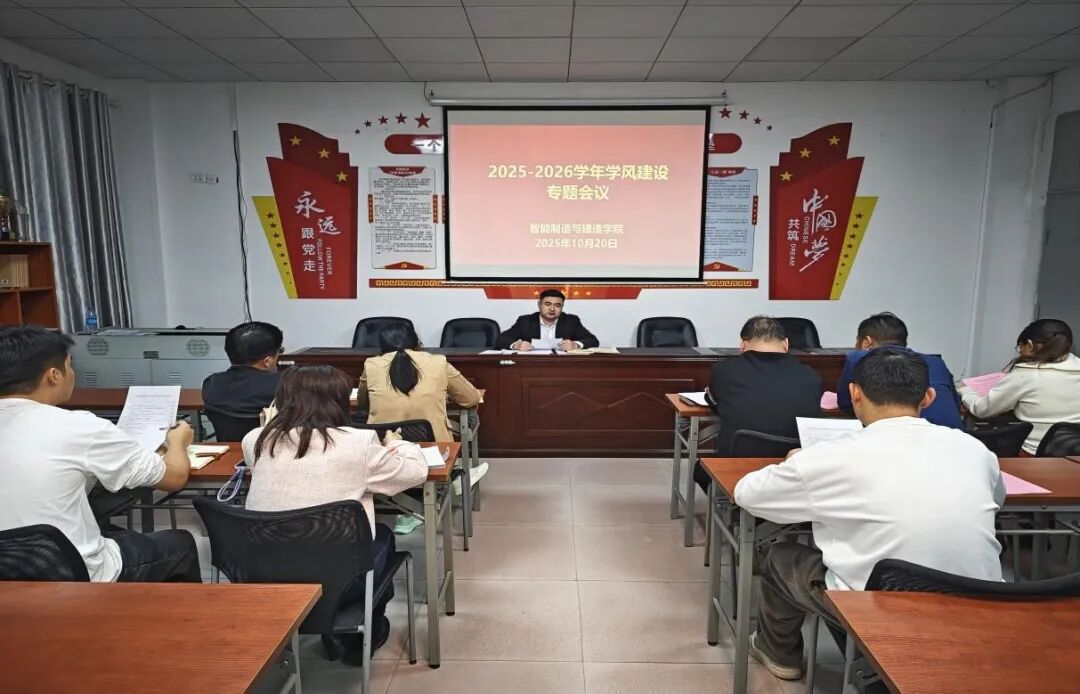 为进一步强化我院育人氛围,筑牢人才培养质量根基,推动学风建设常态化、精细化发展。2025年10月20日,智能制造与建造学院在仙女湖校区B栋104会议室召开2025-2026学年学风建设专题会议。会议由党总支书记范向红主持,党总支副书记李思和全体辅导员参加。