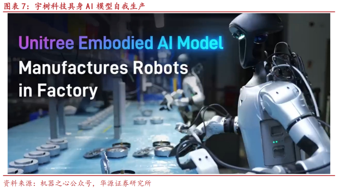 算法多项升级:团队升级强化学习框架,使机器人在仿真环境中自主习得复杂武术动作及器械操控技能,并采用融合感知的定位技术,有效解决高速运动中的定位漂移问题,实现精准导航与落点控制,同时,基于 UnifoLM-X1-0 具身 AI 模型,宇树在自家工厂完成了实际部署:机器人在自己造机器人。