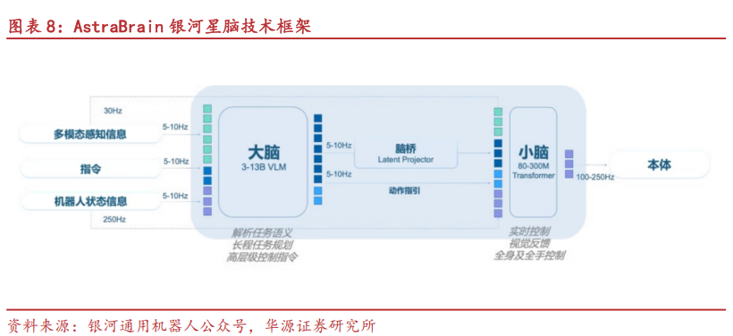 端到端大模型:搭载自研银河星脑 AstraBrain,是全球首个集成“大脑-小脑-神经控制”的端到端大模型,实现自主感知、自主决策、自主执行,拒绝对特定动作的机械设定,而是让机器人掌握一套可以泛化到新场景、新任务的通用能力。
