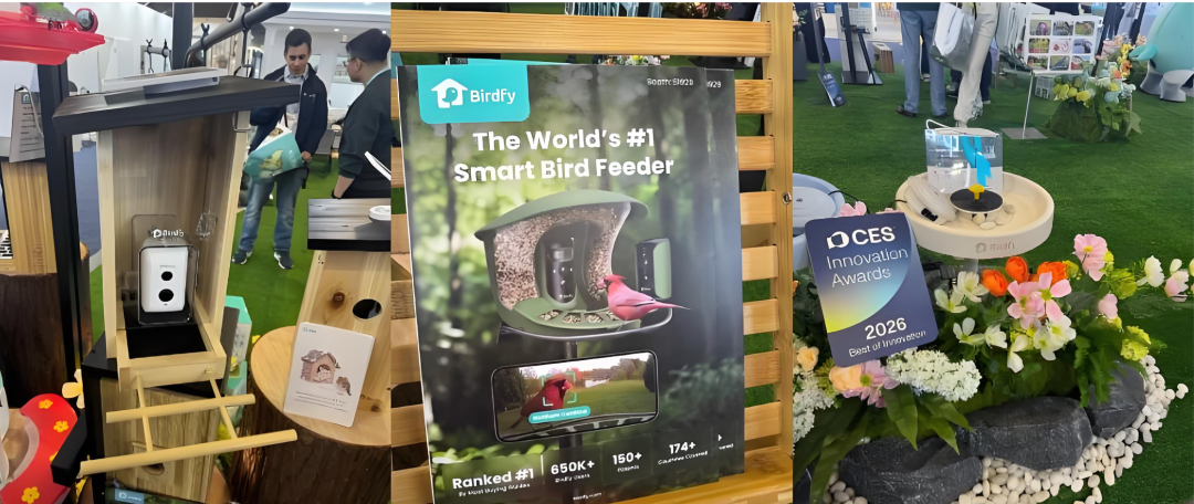 Birdfy的AI摄像设备能够识别鸟类声音和行为,将影像设备升级为“自然观察助手”,这也让Birdfy今年CES的展台成为国外观众的新宠;