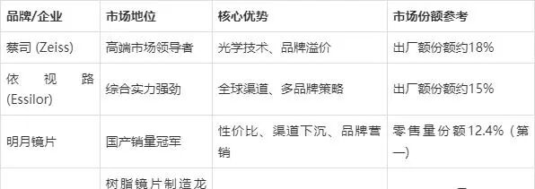 目前国内镜片市场呈现“外资主导高端,国货发力中高端”的格局。