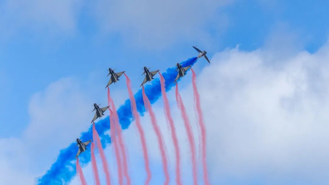 这一刻长春燃了,观众燃了,伟大的空军用钢铁巨鸟在天空中舞出了浪漫轨迹,为2025年的国庆献礼。