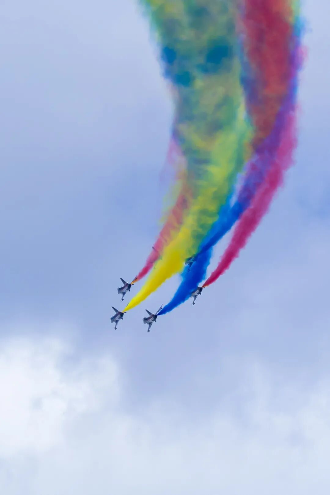 双机拉起、翩然分开、对冲交叉,白色烟迹在北国长空画出巨大心形。