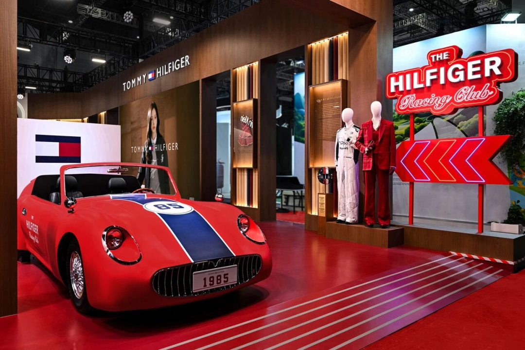 TOMMY HILFIGER首次参展,就在现场打造了一个“TOMMY赛场俱乐部。展台以品牌主色调红白蓝,将赛车元素与学院风叠加,让现场观众切实体验到了一次美式青春。在复古拉力赛的氛围中,观众可以在复古赛车打卡区拍照,在桌面赛车游戏中激情竞速,还可以走进刺绣工坊,为帽衫、夹克加上姓名缩写或赛车编号等专属标记。