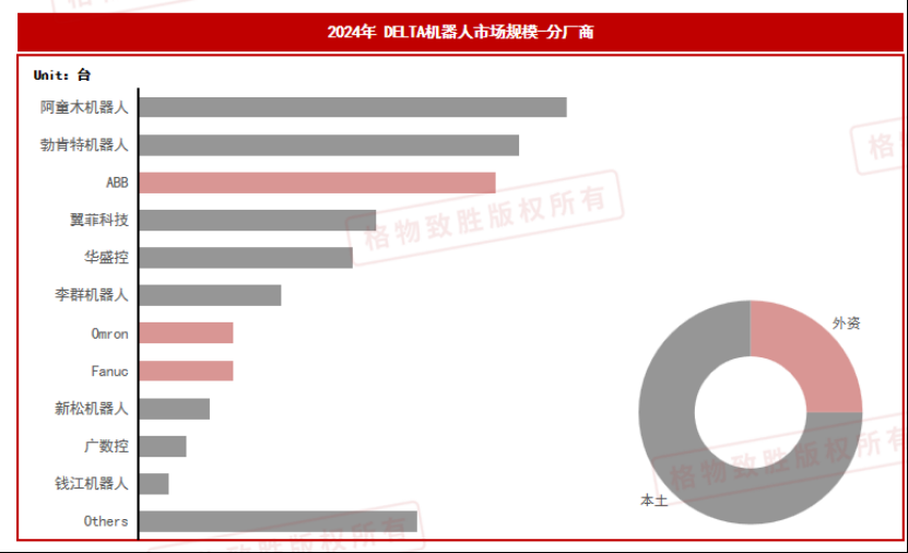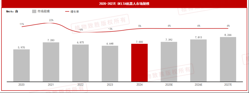 2024年DELTA机器人销量平稳增长,整体销量达到7000台,同比增长5%左右;