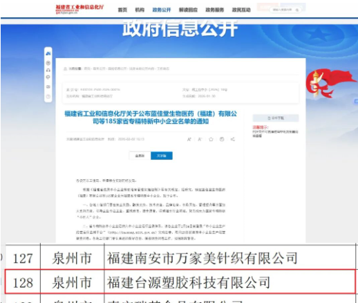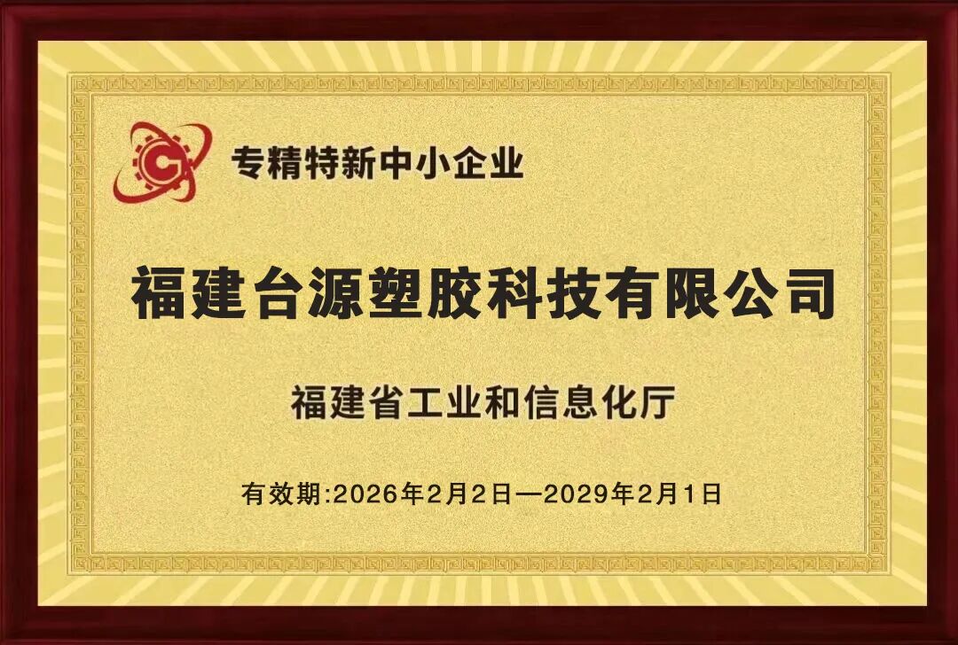 日前,台源塑胶在继2025年获评福建省创新型企业之后,2026年再传捷报:成功斩获福建省工信厅授予的福建省“专精特新”中小企业认定。这是对企业多年来坚守专业化、精细化、特色化、新颖化发展的权威佐证,更是对其创新能力、市场竞争力与发展韧性的高度认可,成为台源塑胶高质量发展路上的重要里程碑,注入强劲动力。
