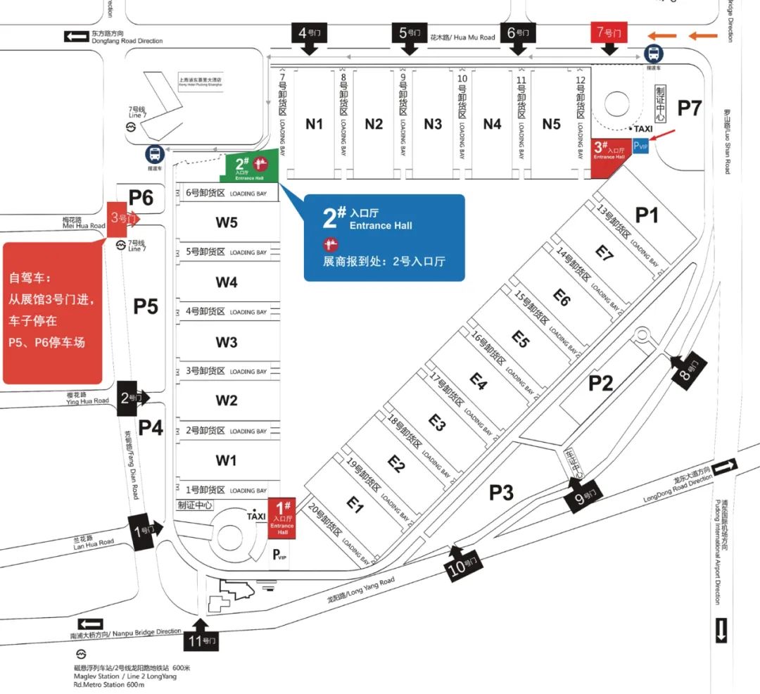 乘地铁7号线至花木路站从1号口出即可抵达新国际博览中心2号入口厅