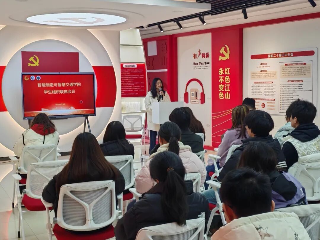 为进一步加强学院各学生组织间的沟通协作,总结工作经验,谋划未来发展,3月19日中午,智能制造与智慧交通学院在数字化中心党建与廉政教育基地召开2026年春学期学生组织联席会议。学院学生会、团委组织实践部、创新发展部、媒体宣传部等四个学生组织的指导老师、主席团成员及各部门副部长及以上学生骨干参加会议。会议由学院团学办副主任、团委副书记王帆老师主持。