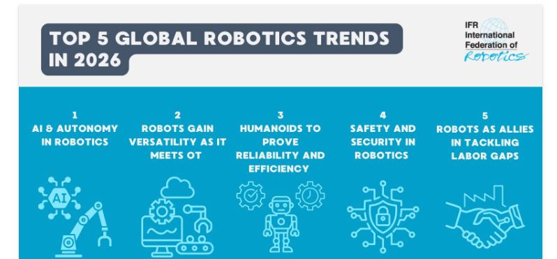 近日,国际机器人联合会(IFR)称,工业机器人安装的全球市场价值已达到167亿美元的历史最高点。IFR同时指出,技术创新、市场驱动与新兴商业场景的崛起,将成为未来机器人需求增长的核心引擎,并前瞻性梳理出 2026 年机器人行业的五大发展趋势(以下内容根据IFR报告整理):