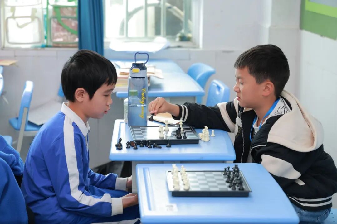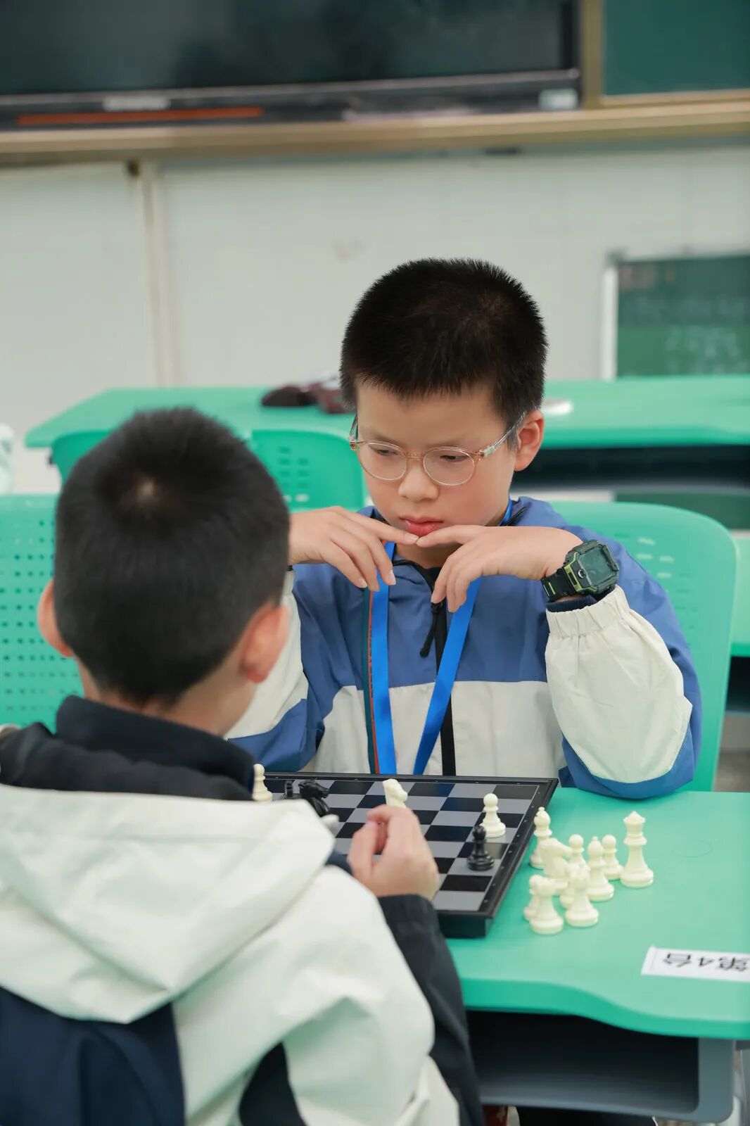 赛场上,小棋手们凝神专注、沉着应战,棋盘上兵卒对垒、车马交锋,每一步落子都彰显着逻辑思辨与战术智慧。