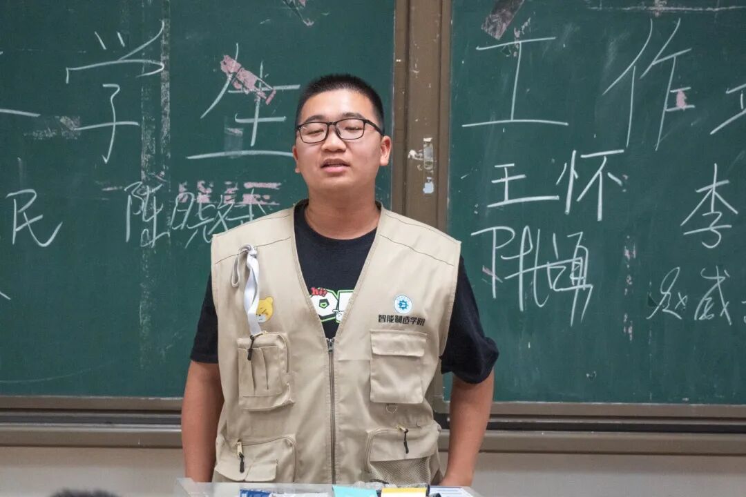 智能制造学院易班学生工作站站长郑培鑫首先对新成员表示热烈欢迎,介绍各部门的主要工作,并向新成员提出了这个学期的工作要求。其次,他结合自身在智院易班的工作经验,为新成员分享了一些有利于提高工作效率的方法。最后,他希望易班的全体成员能够积极完成任务,团结一心,迎难而上,让易班越来越好。