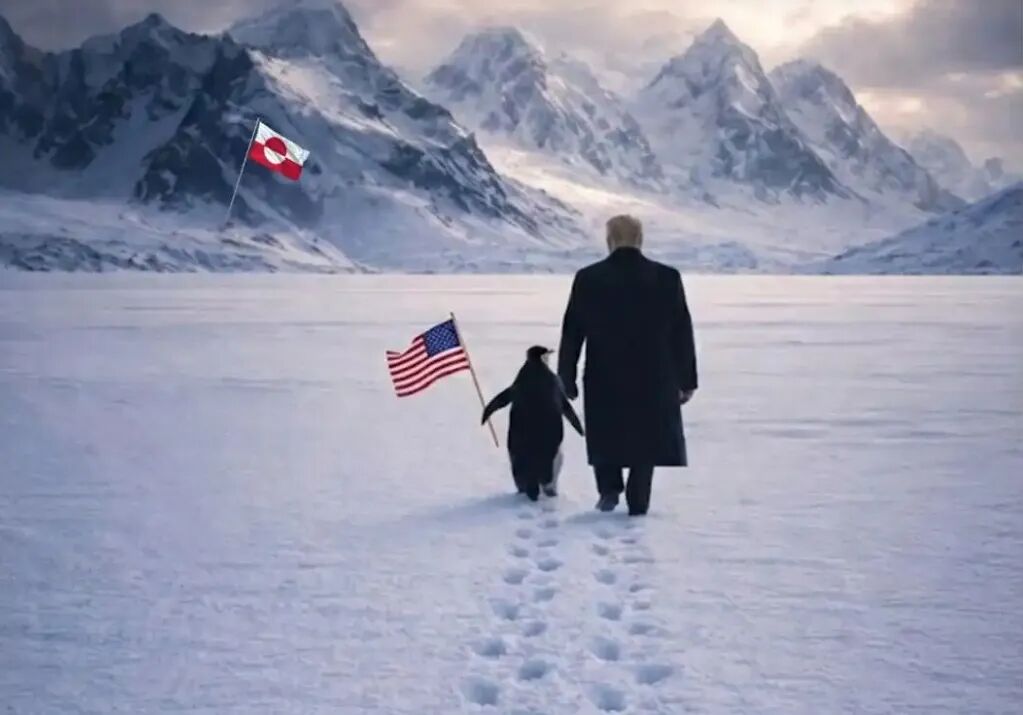 👉白宫发布特朗普与企鹅走向格陵兰岛AI图片,网友“惊呆”:企鹅生活在南半球,格陵兰岛没有企鹅。
