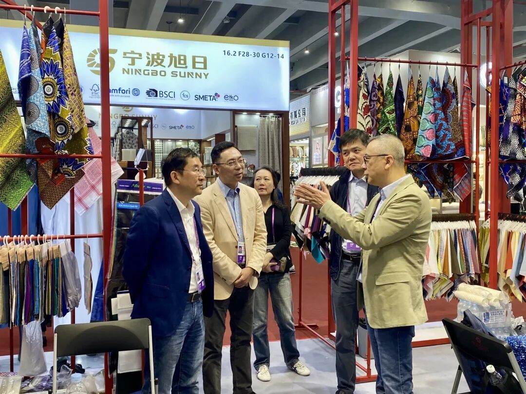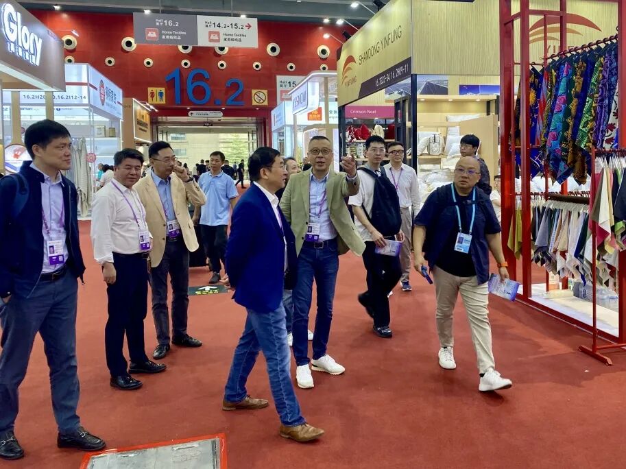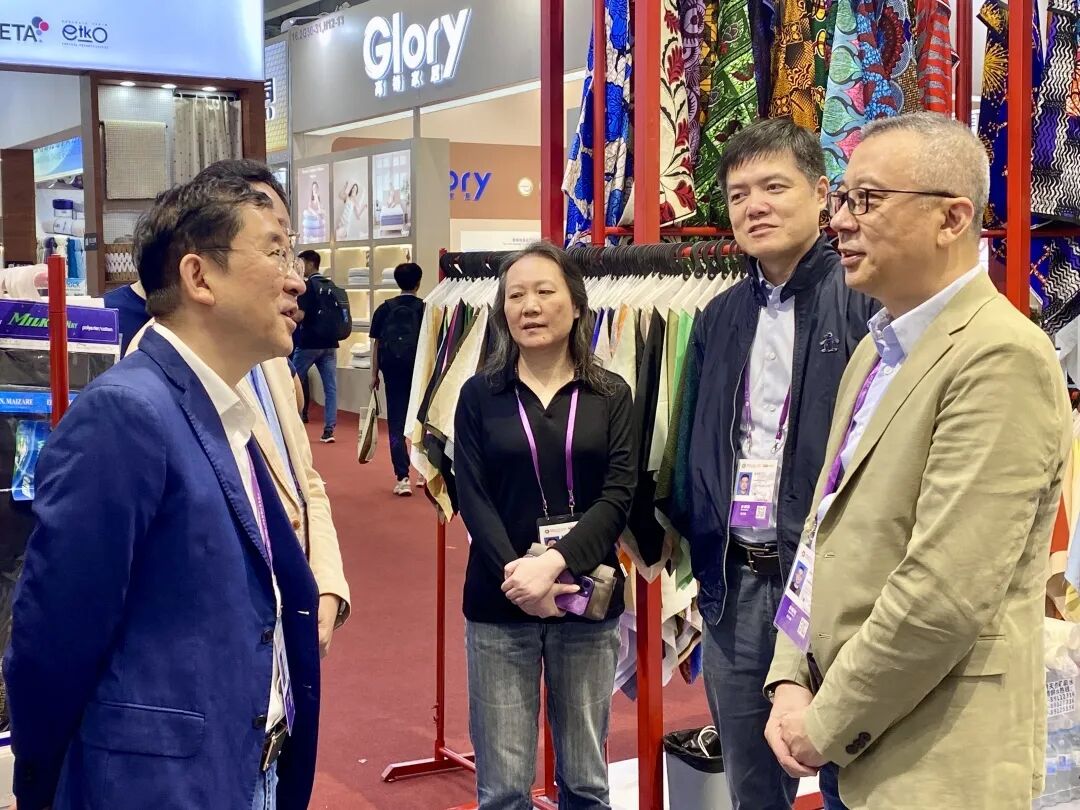 开展首日,东方国际集团总裁朱毅在纺织品公司党委书记、执行董事、总经理张荻的陪同下,来到纺织品公司展台指导工作。集团领导详细了解了纺织品公司的关税应对措施、参展安排及客商反馈等情况,鼓励大家坚定“走出去”步伐,凭借高质量产品和优质服务,不断开拓多元化国际市场,体现出集团对纺织品业务板块的高度重视和殷切期望。