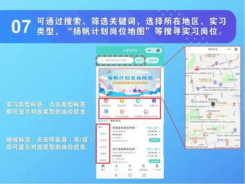 “扬帆计划”由共青团福建省委统一组织,汇聚全省各级党政机关、事业单位、国有企业、金融机构以及多家优质民营企业实习岗位,并设有基层服务、寒暑期社会实践等专项计划。