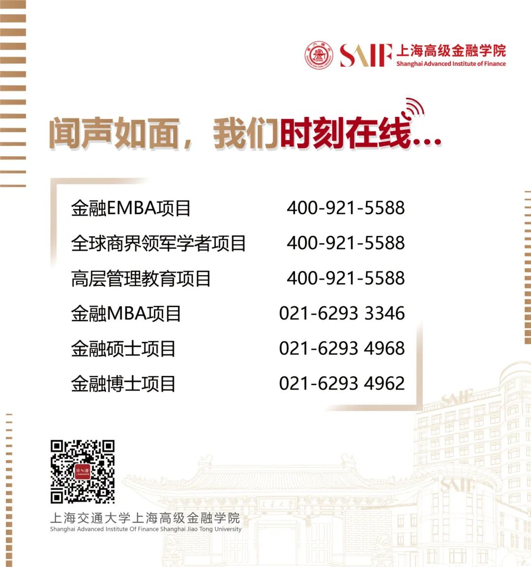高金项目火热招生中…欢迎点击小程序了解更多信息精彩推荐高金:国际一流师资团队如何打造?交大高金与美中关系委员会共同主办2025年“中美经济二轨对话”高金教授多篇论文入选2025欧洲金融协会年会,严冬获Review of Finance最佳非投资论文奖高金成功主办外滩大会见解论坛 共探AI赋能金融产业落地新路径上海高级金融学院与人工智能学院签署战略合作备忘录