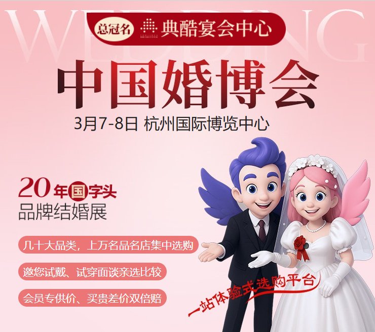 2026年杭州婚博会将于3月7-8日在杭州国际博览中心开幕。拍婚照、订婚宴、找婚庆、买婚纱、选钻戒,还有喜酒喜糖、婚车、床品,20大结婚行业品牌参展,2天逛展一站购齐,省去东奔西跑,关键价格还优于门店,为您的婚礼精打细算!