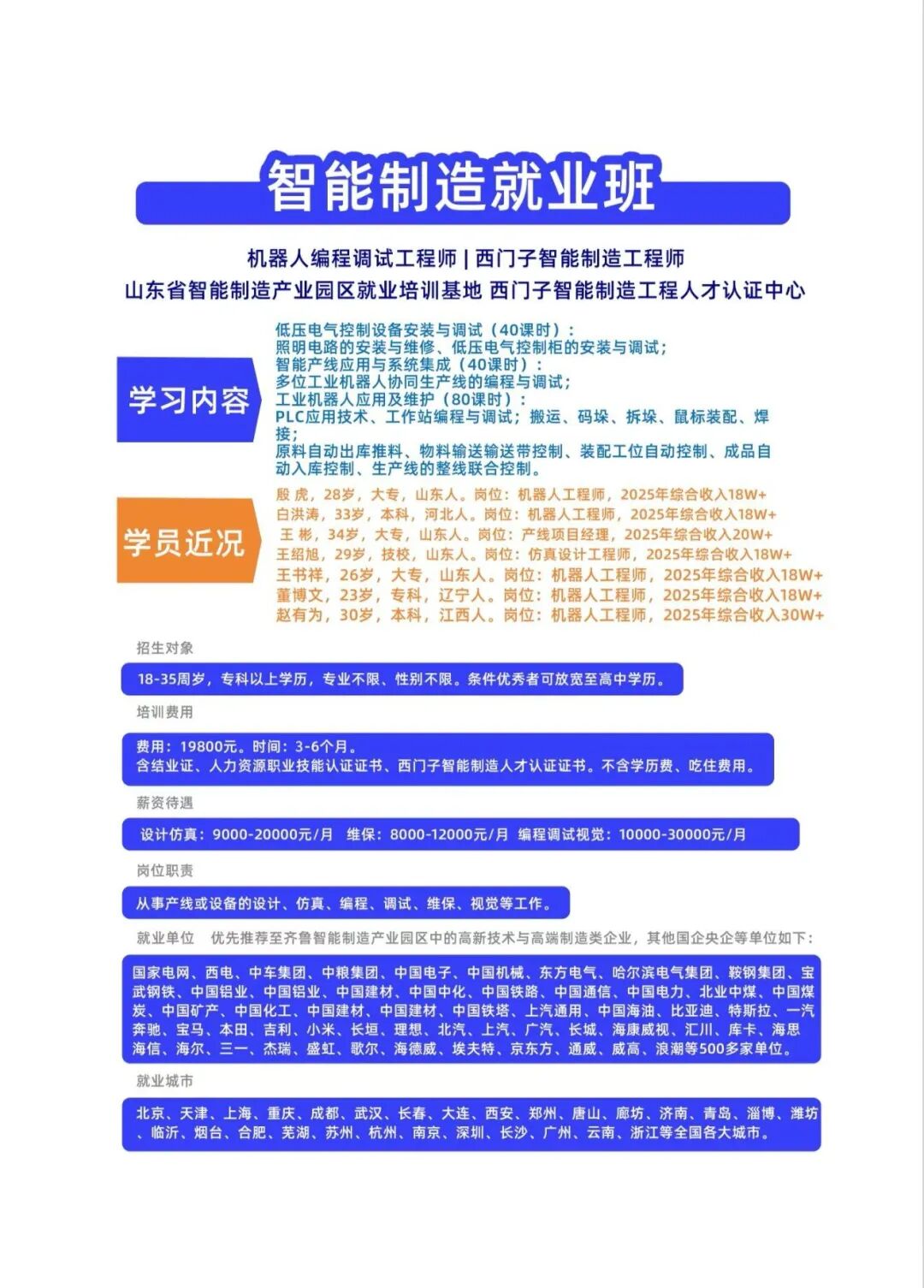 课程涵盖电工电子、PLC编程、机器人操作与维修、自动控制、传感器技术等前沿内容,助力学员掌握企业真实所需技能。