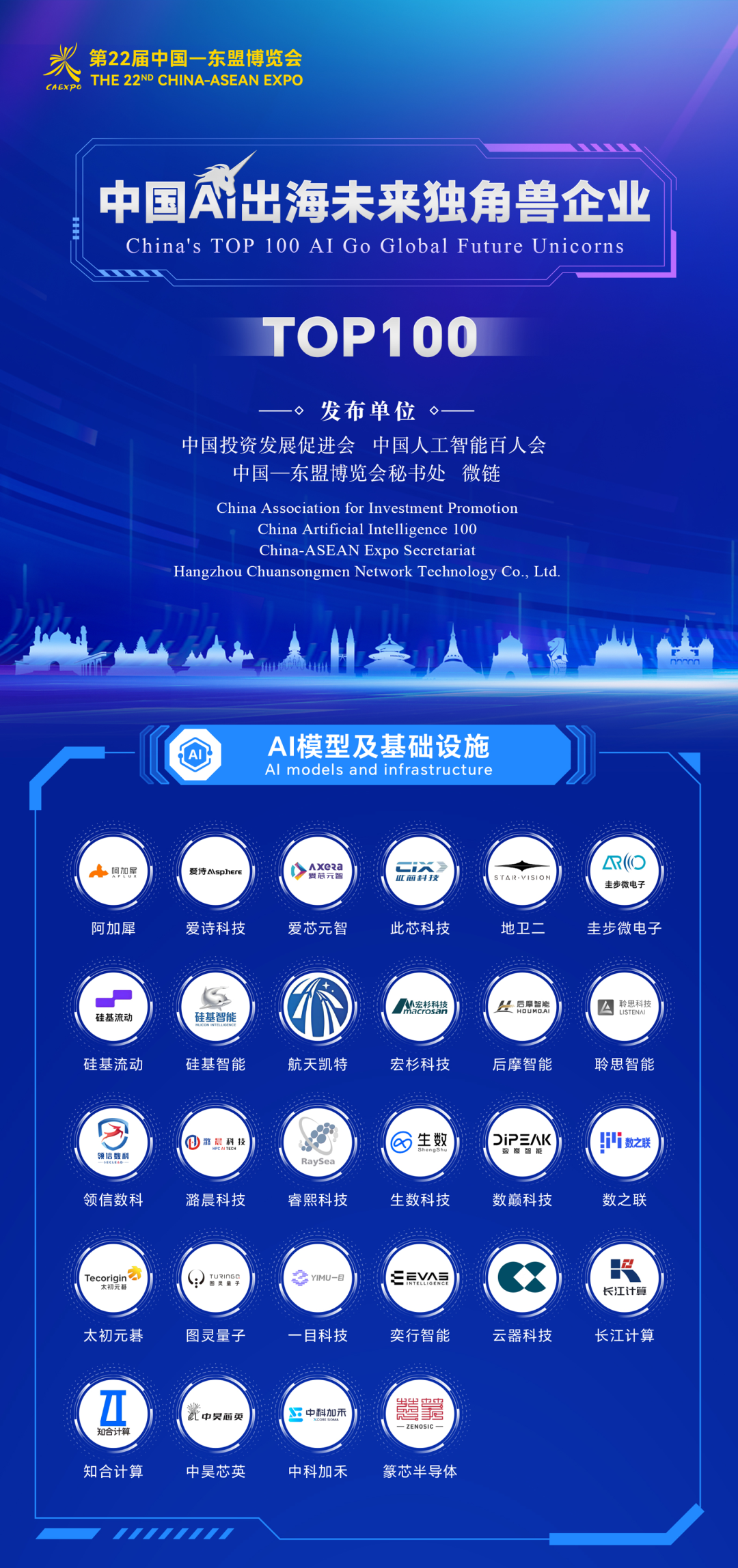 此外,本届东博会 “AI 出海独角兽之夜” 首次重磅发布《中国 AI 出海未来独角兽企业 TOP100 榜单》。该榜单历经多轮严格筛选与权威专家评审,从 AI 模型及基础设施、AI 行业应用、具身智能三大核心领域,遴选出在东盟市场表现卓越的代表性企业,为中国 — 东盟 AI 产业协同发展搭建起优质合作桥梁。