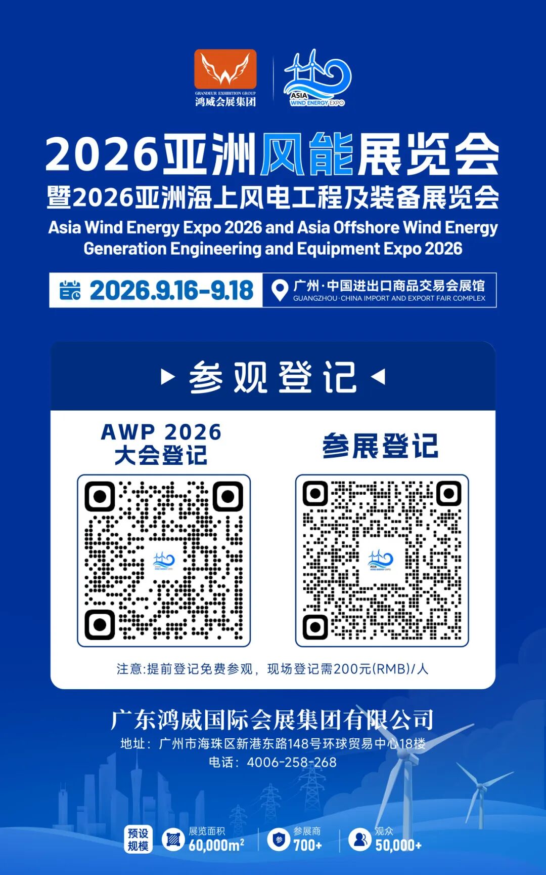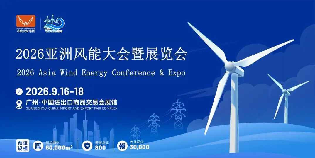 2026亚洲风能展览会 将于9月16-18日在广交会展馆举办,期待再次相聚,共谱风电发展新篇章!