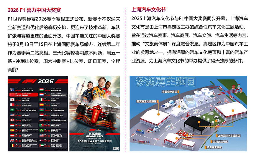 跨界联动:与同期举办的F1中国大奖赛、上海汽车文化节形成“房车+潮车+赛车+文化”IP联动,共享客流与氛围。