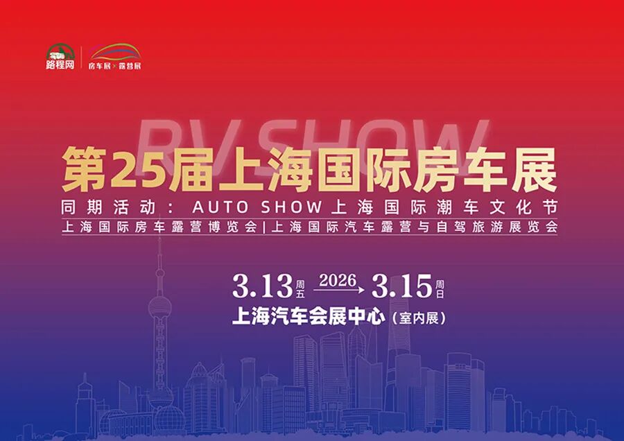 2026RV SHOW第25届上海国际房车展将于3月13-15日上海汽车会展中心盛大举办。免费门票预登记已开启,为避免现场人数过多,造成不便,请提前索票。本届展会将充分发挥好“路程网-上海国际房车展”的主场优势,以“房车+”战略为核心,同期举办AUTO SHOW上海国际潮车文化节,整合房车、潮车、配件供应链、户外露营供应链等多产业资源,构建覆盖全产业链的专业展示与交流平台。