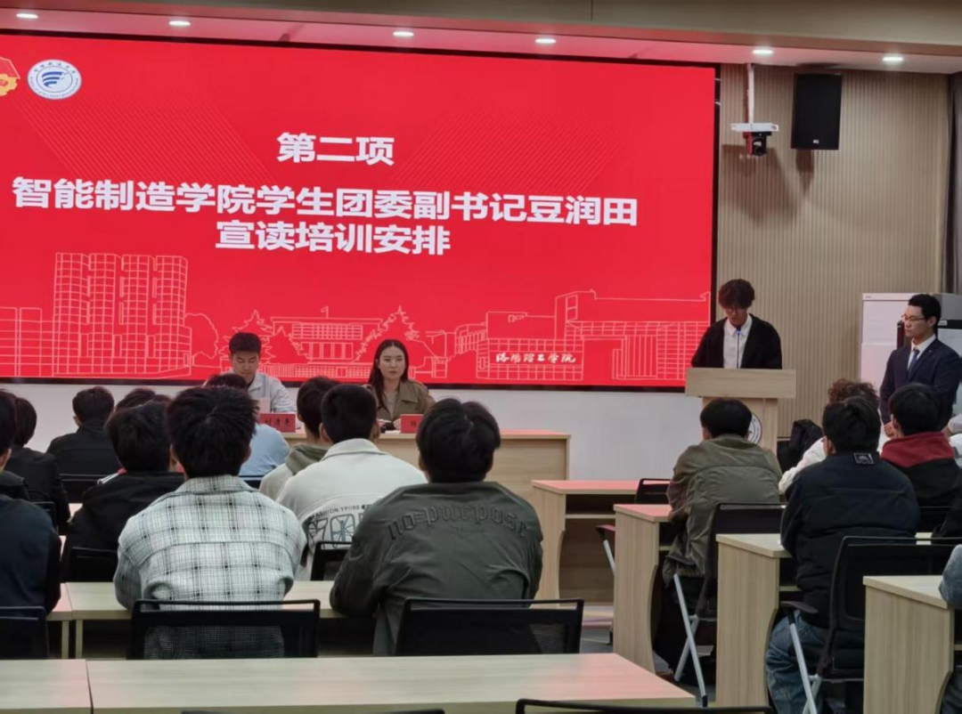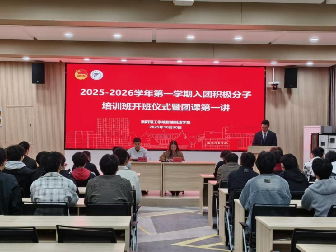青春心向党,扬帆新征程。为进一步加强共青团员队伍建设,深化青年思想政治引领,2025年10月30日下午,智能制造学院在CS203举行2025-2026学年下半年入团积极分子培训班开班仪式暨团课第一讲。出席仪式的有学院团委副书记韩坤老师、2025级辅导员刘清亮老师,以及全体入团积极分子。