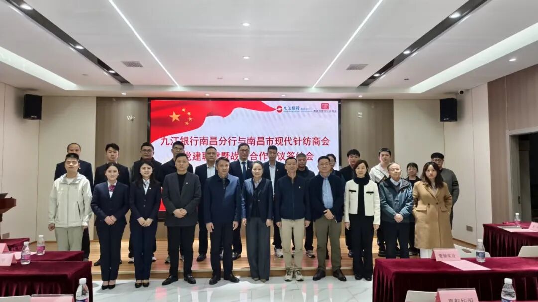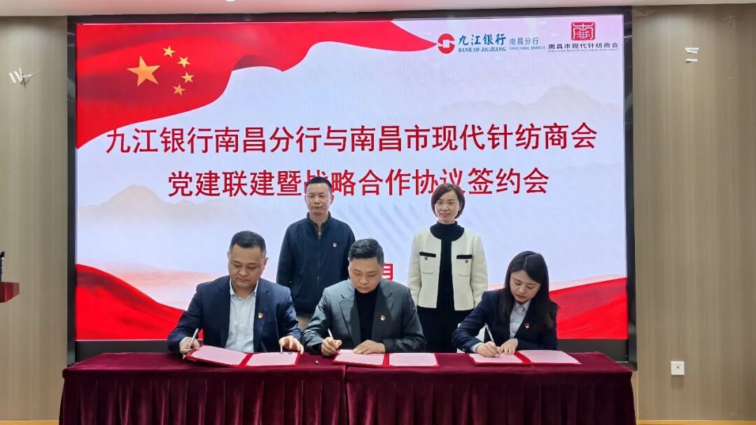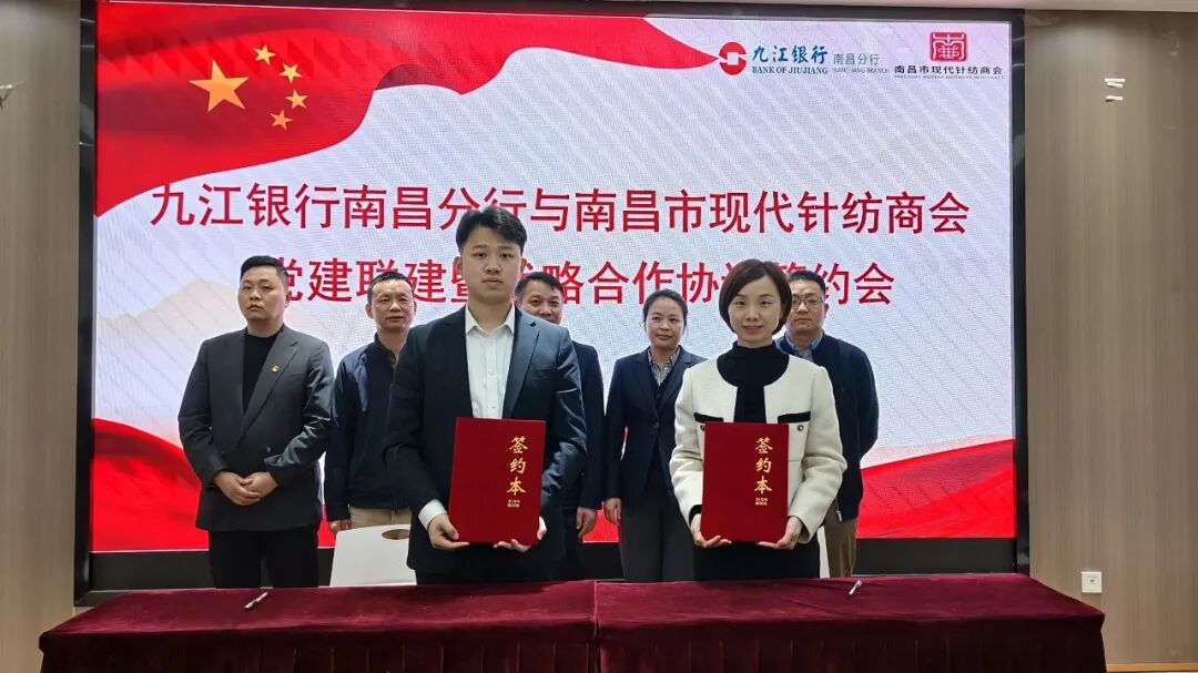 3月31日下午,为推动金融服务与实体经济深度融合,南昌市现代针纺商会与九江银行南昌分行开展党建联建工作,并签署全面战略合作协议。