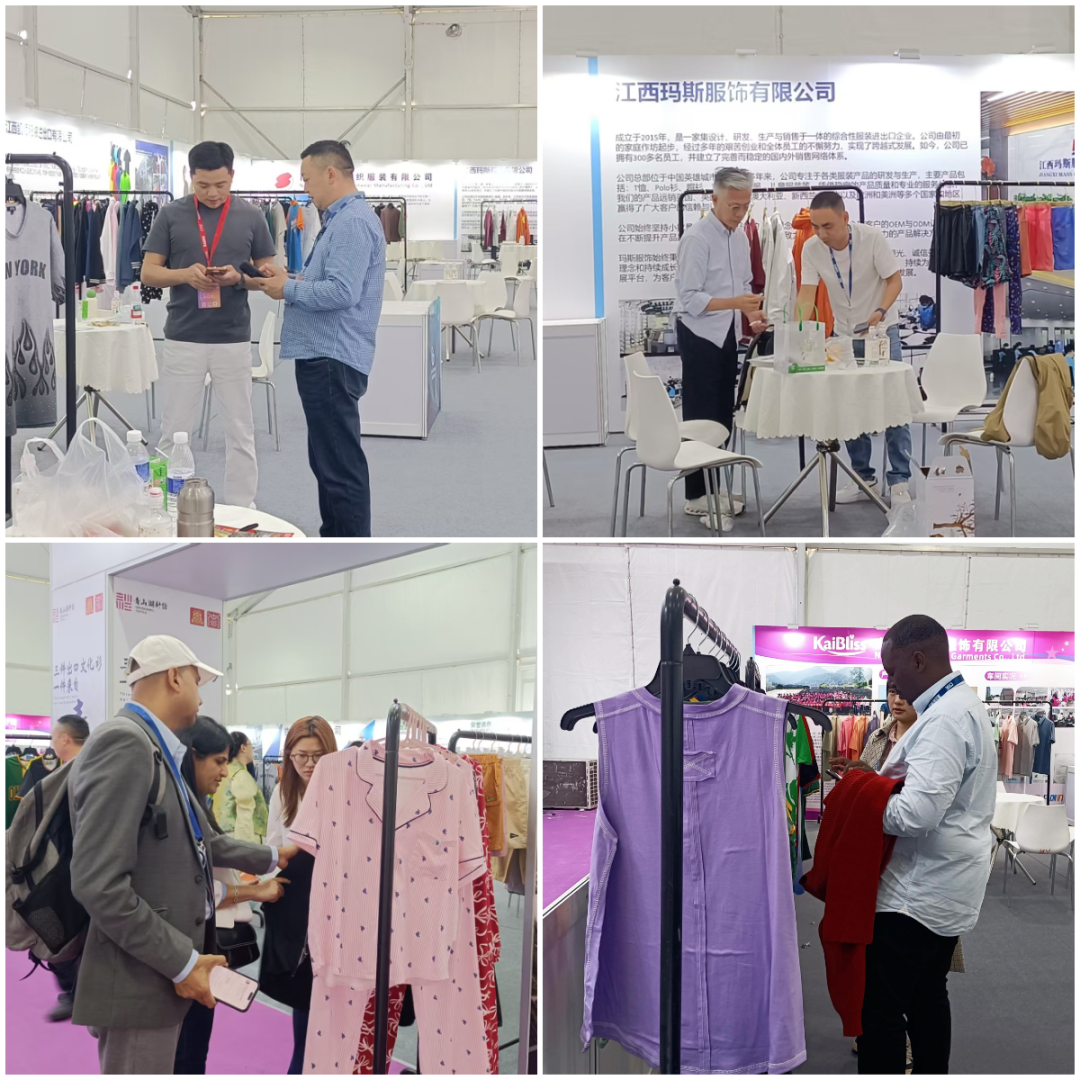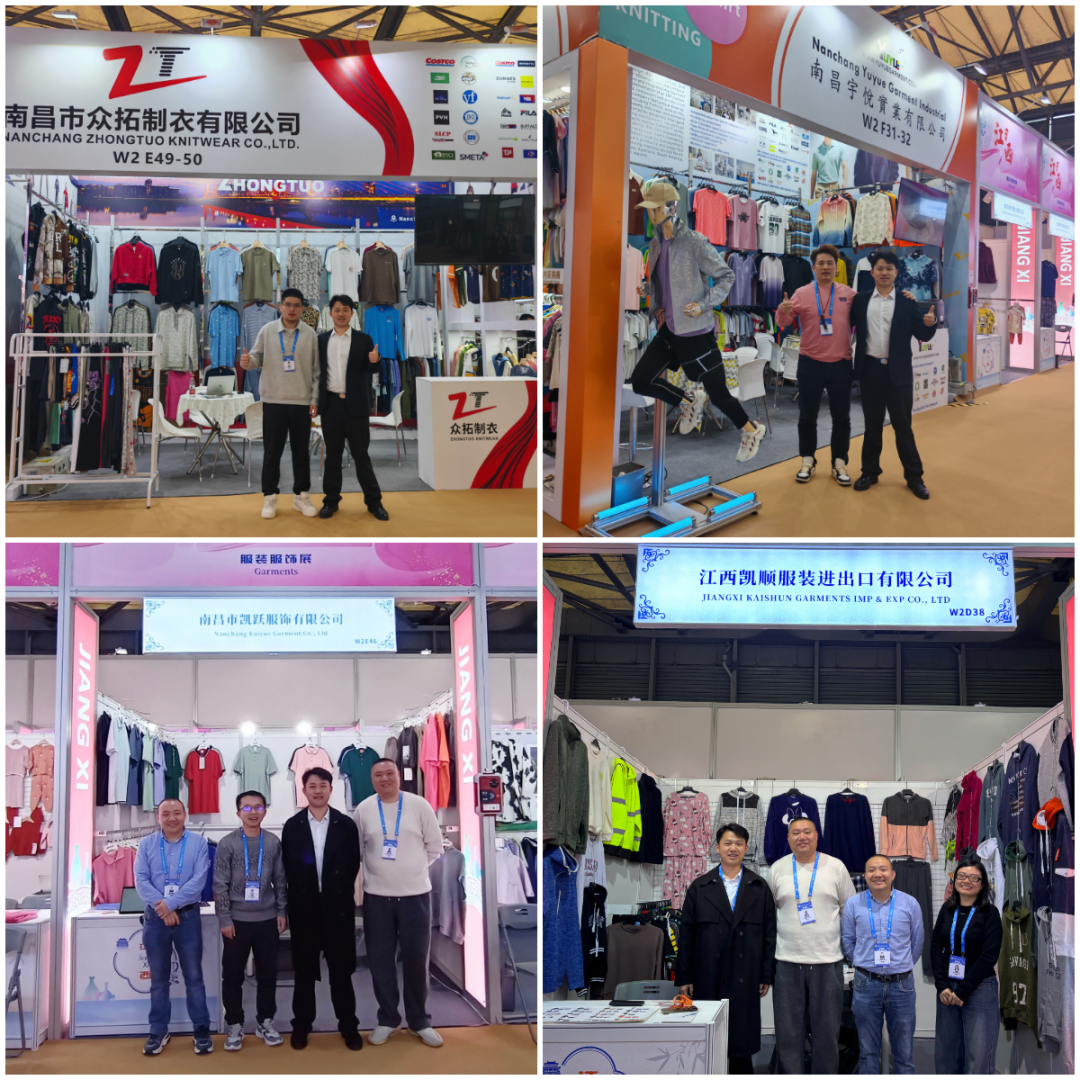商会组织南昌市康业制衣有限公司、江西省国亚制衣有限公司、南昌市普特制衣有限公司、江西凯顺服装进出口有限公司、南昌盛友针织服装有限公司、南昌市凯跃服饰有限公司、江西舜时针服饰有限公司、江西玛斯服饰有限公司等八家企业代表以“南昌市青山湖区针织服装产业集群”形式抱团参展,集中展示南昌针纺产业的整体形象与创新实力。