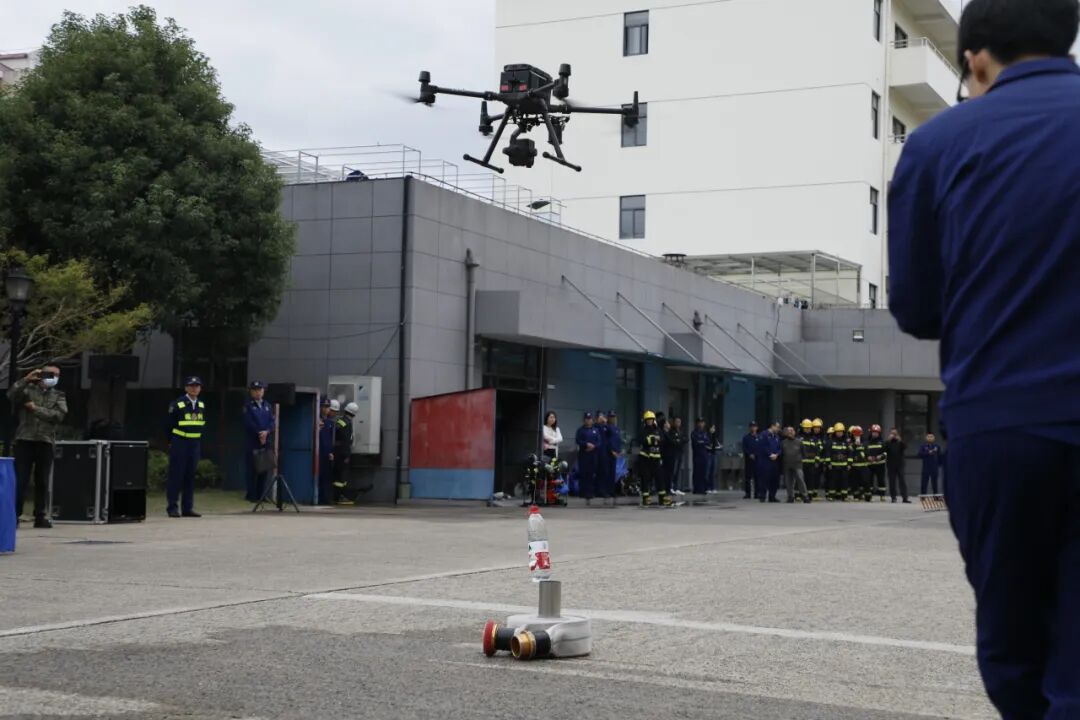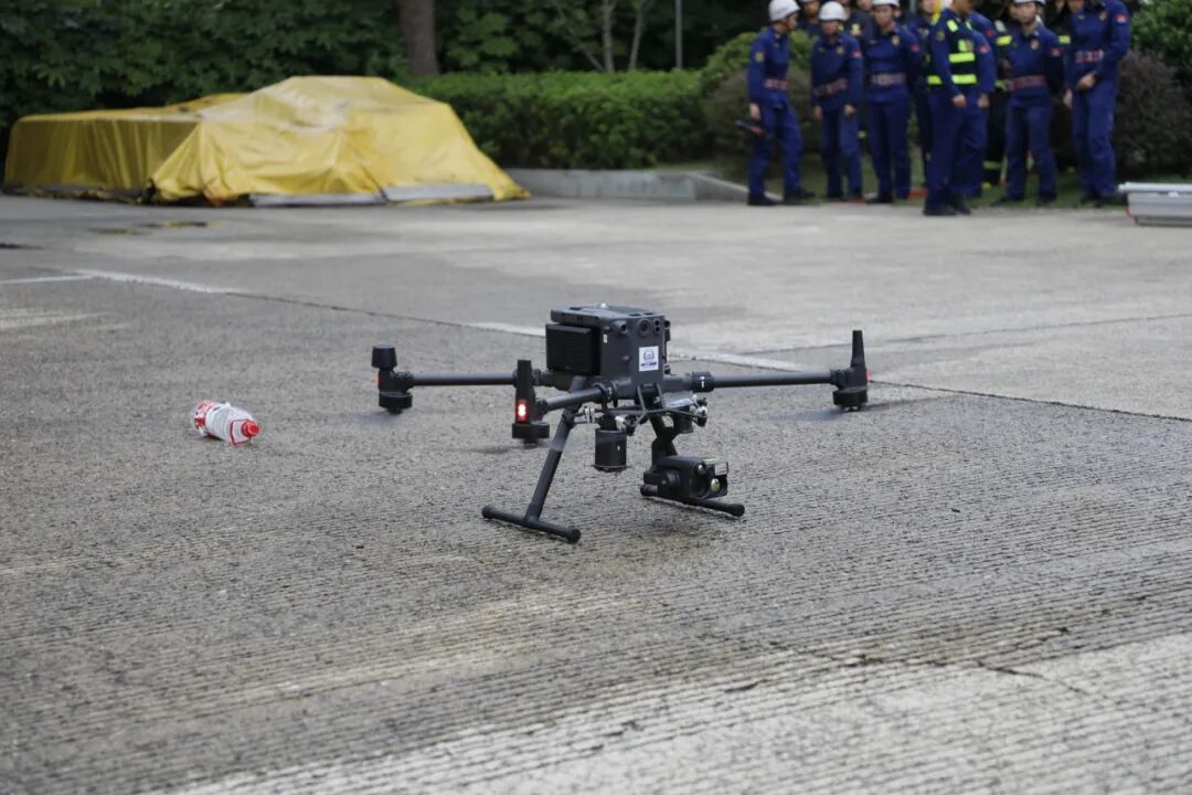 消防员操作无人机执行空中侦察,精准识别指定目标,并完成救生物资的空投任务,展现科技赋能应急救援的新水平。