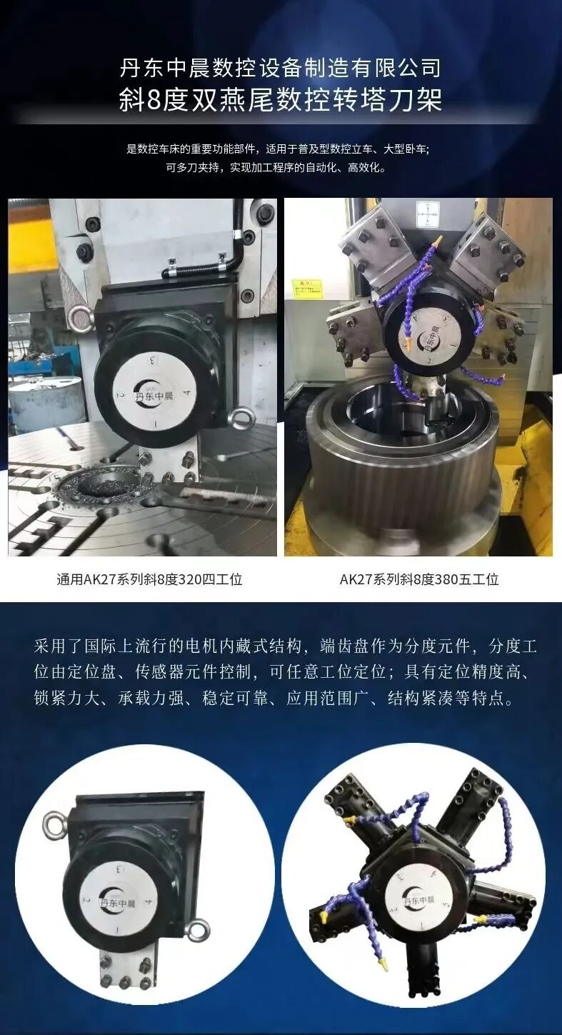 丹东中晨数控设备有限公司,一家集研发、生产、销售各种数控机床、数控刀架、数控刀塔、数控转塔刀架及配件的科技型企业,拥有从毛坯生产、精密加工、装配和检测试验的机械制造能力,自主创新能力的企业,公司配套国内几十家主机厂,多年来一直得到行业内好评。企业在2014年拥有进出口权,给多个发展中国家生产各类零部件等.