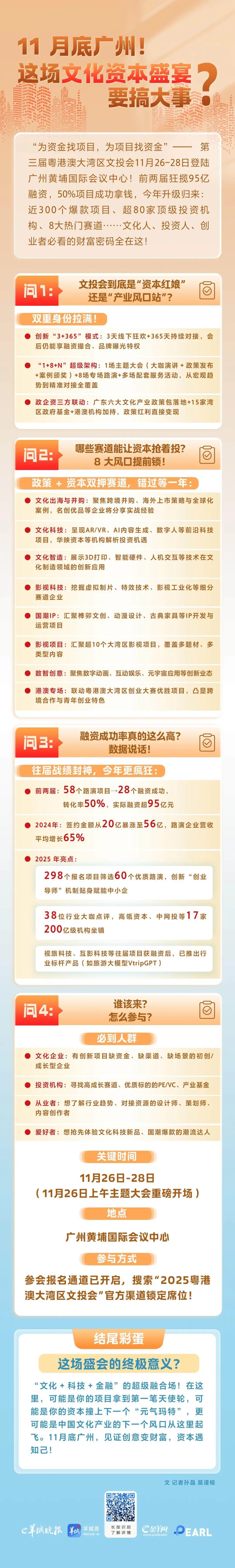 第三届2025粤港澳大湾区文化产业投资大会将于11月26日至28日在广州・黄埔国际会议中心重磅启幕!