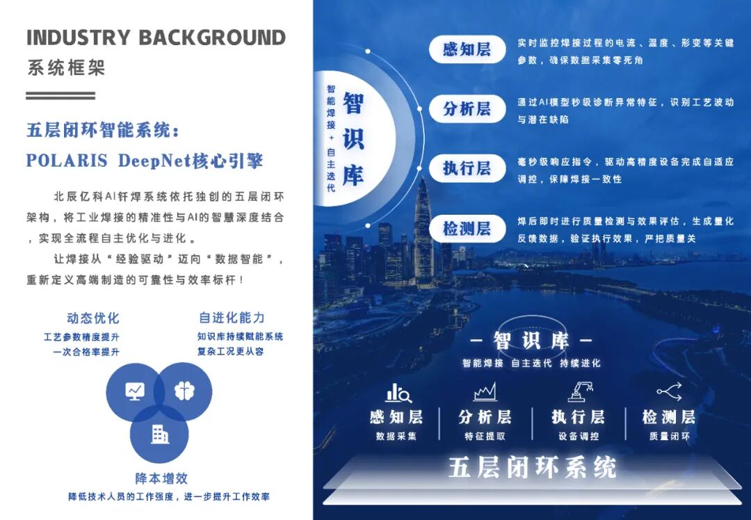 本次展会,北辰亿科重点展示了人工智能钎焊系统POLARIS DeepNet,人工智能钎焊系统集多项先进技术于一体,提供完整的焊接解决方案,突破性实现了焊接参数零人工干预与工艺全流程自主优化,显著提升产品一次合格率。