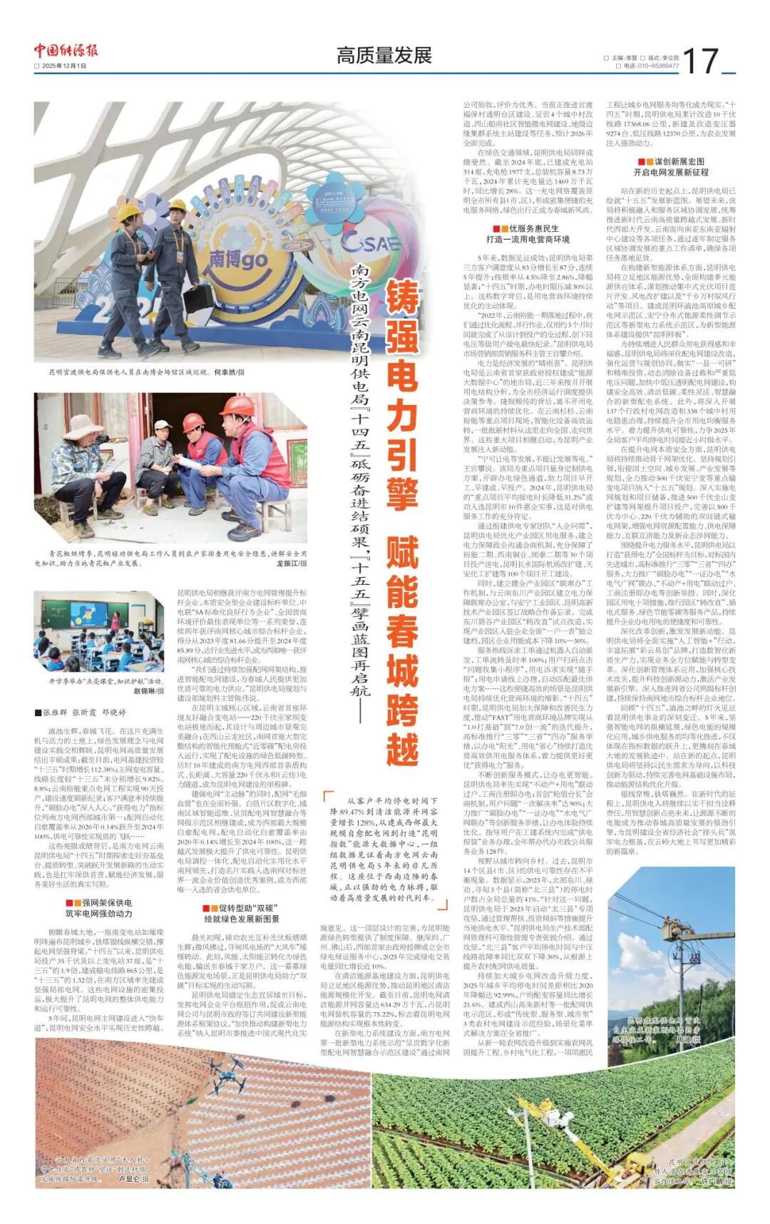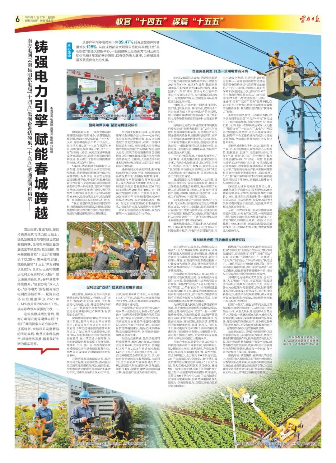近日,人民网、中国能源报、云南日报对《南方电网云南昆明供电局“十四五”砥砺奋进结硕果,“十五五”擘画蓝图再启航—— 铸强电力引擎 赋能春城跨越》相关内容进行了报道。