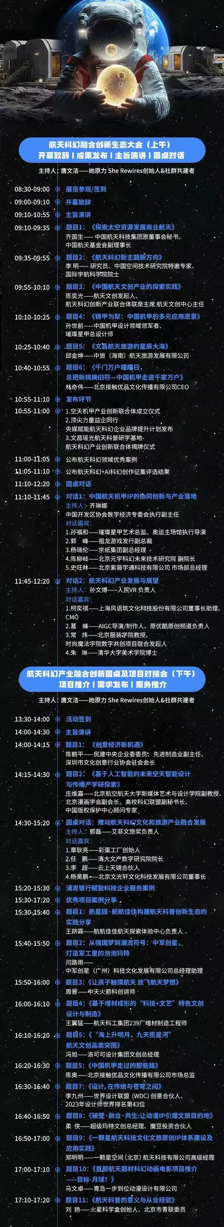 【温馨提示】 本次大会为行业专业会议,欢迎航天、科技、文创、文旅、投资等相关领域从业者及航天相关领域爱好者参与。