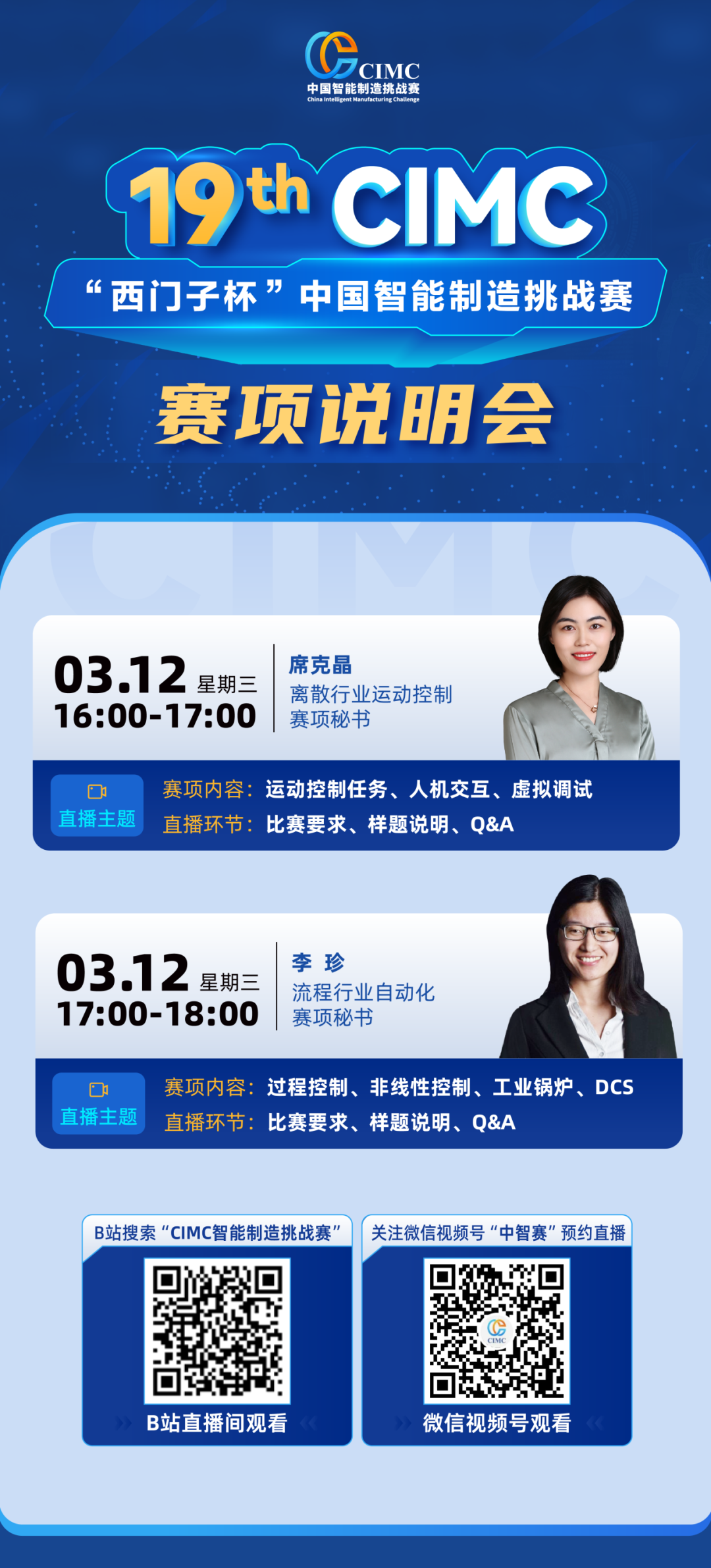今明两天周三、周四(3月12日、13日),三场直播将带大家领略离散行业运动控制、流程行业自动化、智能装备设计与数字孪生制造赛项的独特魅力,绝对不容错过!