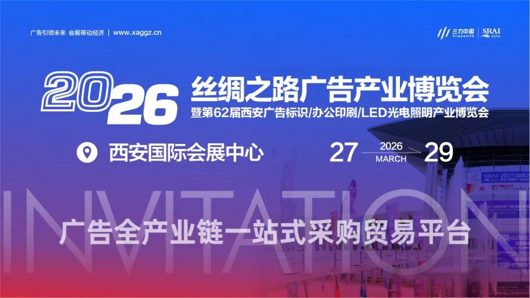 备受行业瞩目的2026丝绸之路广告产业博览会暨第62届西安广告标识/办公印刷/LED光电照明产业博览会,将于3月27日—29日,在西安国际会展中心3号馆盛大启幕。这场为期3天的广告全产业链盛宴,将汇聚行业力量、碰撞创新火花,为从业者搭建资源对接、技术交流、市场拓展的核心平台。