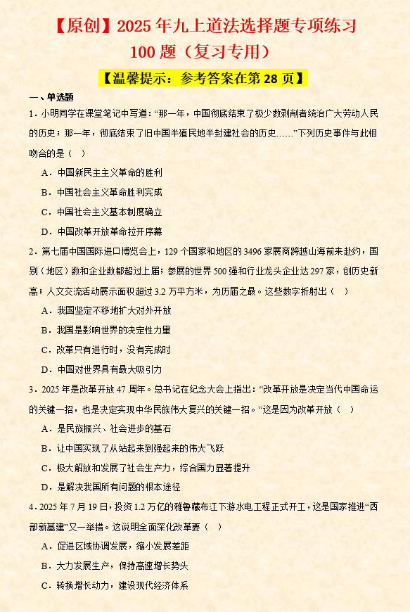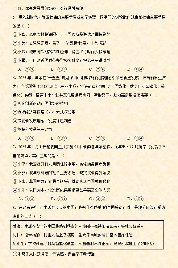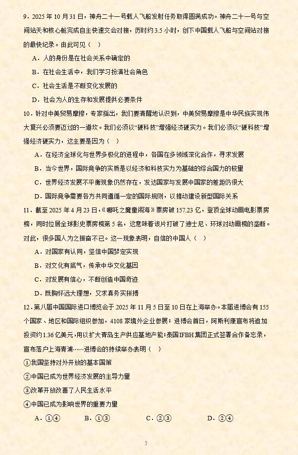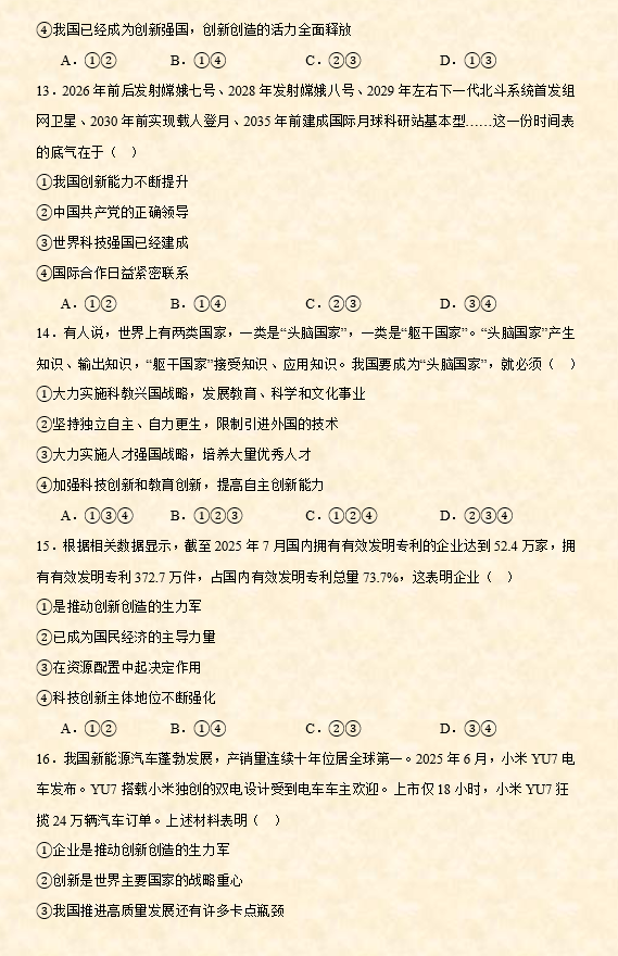 3.2025年,中央全面深化改革委员会审议通过《关于构建高质量教育体系的实施意见》,对教育强国建设作出新部署。在《加快建设教育强国》一文中强调:“党的十八大以来,我们坚持把教育作为国之大计、党之大计,全面贯彻党的教育方针,推动新时代教育事业取得历史性成就、发生格局性变化。”我国高度重视教育是因为( )