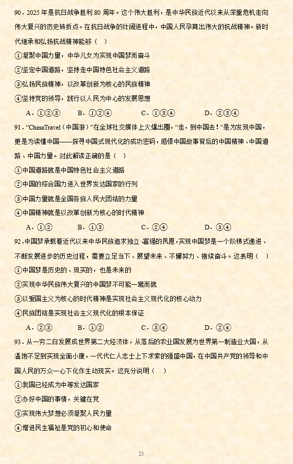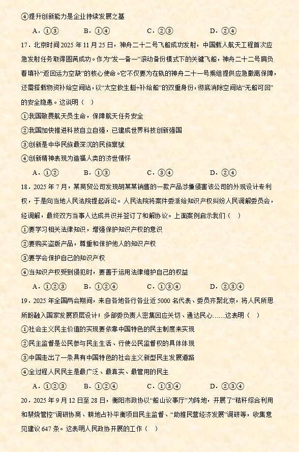16.2025年是西藏自治区成立60周年。60年来,在党中央坚强领导下,在全国人民大力支持下,西藏各族干部群众艰苦奋斗、顽强拼搏,西藏步入发展最好、变化最大、群众得实惠最多的新时代,各项事业取得全方位进步、历史性成就。这得益于( )