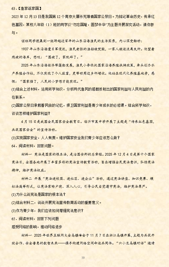 材料二 2025年10月24日,在台湾光复80周年之际,十四届全国人大常委会第十八次会议以法律形式重新将10月25日设立为"台湾光复纪念日",恢复历史的本来面目。台湾光复纪念日的设立,不仅是对历史的铭记,更是对未来的昭示——在中国共产党领导下,在全体中华儿女共同努力下,祖国完全统一的历史伟业必将实现,中华民族伟大复兴的梦想必将成真。
