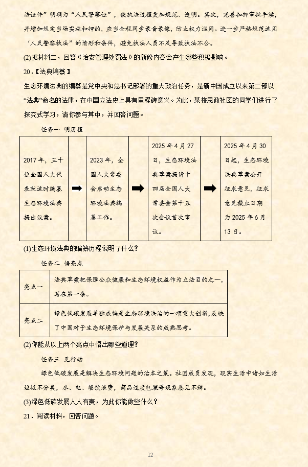 5.“法安天下,德润人心。”坚持依法治国和以德治国相结合关系事业的长远发展。下列材料能体现这一观点的是( )