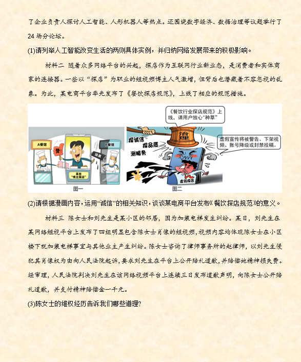 (1)结合材料,运用“我们共同的世界”相关知识,分析我国举办第八届进口博览会对世界发展产生了哪些重要影响?