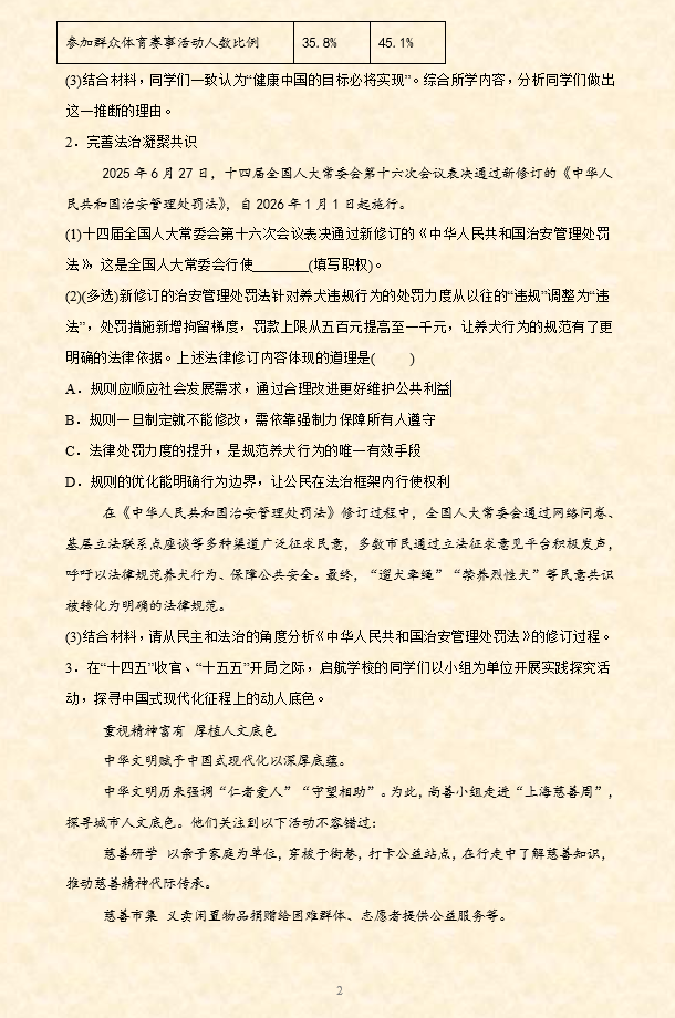 2.党的二十届四中全会审议通过《中共中央关于制定国民经济和社会发展第十五个五年规划的建议》,明确“十五五”时期是基本实现社会主义现代化的关键阶段,聚焦高质量发展、科技自立自强等核心任务。这彰显了党中央( )