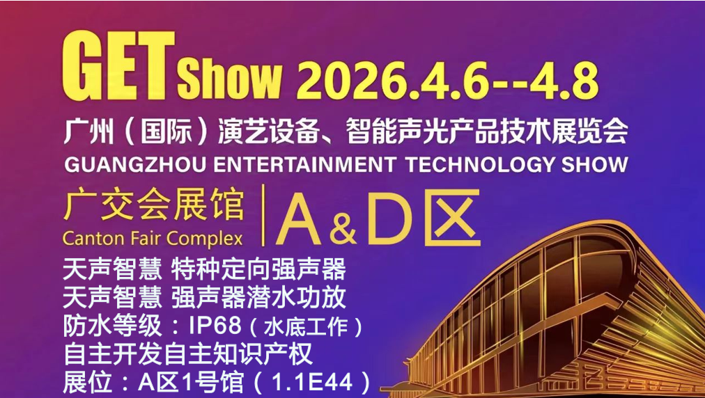 在规模扩容的基础上,2026年GETshow更实现内容的创新与深度拓展,紧扣产业融合发展趋势,精准布局两大全新特色专区,为行业挖掘全新增长赛道。其中,1.1馆打造“录音与制作专区”,聚焦音频创作生态,精准对接专业音频领域的市场需求;1.1馆44号展位将展示广州市天声音响科技有限公司自主创新开发的潜水网络IP功放,广泛应用特种强声器,高声压特种频率音频高效能驱动。2026年GETshow为广大参展企业创造跨界合作机遇,进一步挖掘增量市场。